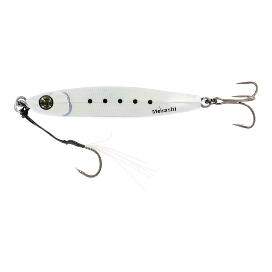 Chispa Mustad Mezashi Jig 60G Shirasu – El Mezashi Jig 60 g Shirasu Mustad ofrece acción rápida y estable en profundidad. Características principales: Diseño de jig asimétrico para mayor vibración. Acabado metálico brillante. Gancho fuerte y duradero. Especificaciones: Tipo: Jig. Peso: 60 g. Color: Shirasu.