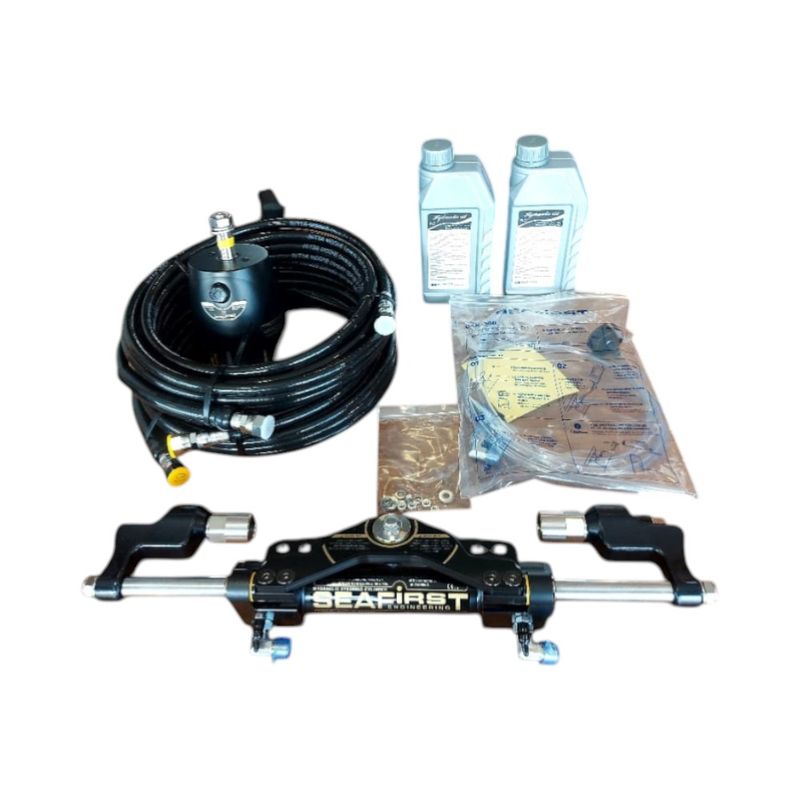 Kit compuesto: Bomba hidráulica Seafirst de 25 cm³, Cilindro frontal hidráulico reforzado, Aceite Hidráulico (2 lt) y 2 mangueras de alta presión.