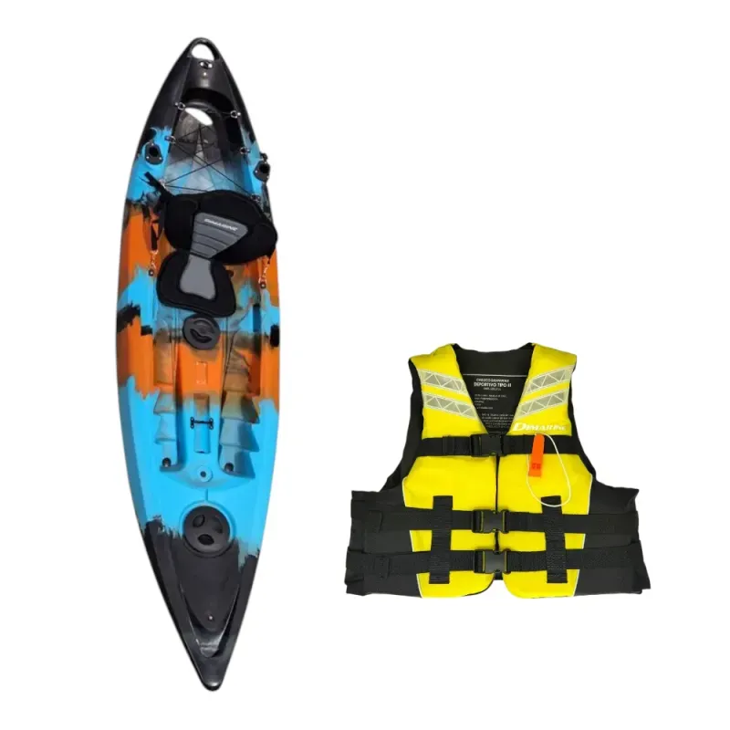Kayak Single TRAVEL, el nuevo modelo inicial de Kayaks de DIMARINE. Con una sólida construcción en LLDPE que le da un acabado brillante y colorido, cuenta con tapa de registro para guardar tus gafas, gorros, etc. y dos portacañas, especial para la pesca.
